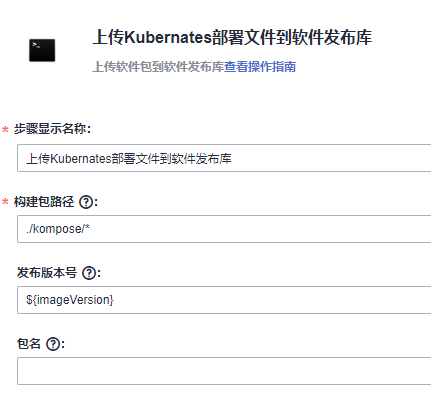 而由于我们在代码仓库中的配置并非我们最终部署时所需的配置(经过编译构建修改docker-server等参数),所以我们需要每个步骤都设置软件发布库中对应的yaml文件。此时,我们会发现,我们原本的构建任务是将所有yaml文件进行了打包压缩后才上传的,没有办法直接选中。所以,我们可以再次创建一个构建任务或者在原有构建任务上进行修改,以使软件发布库中存放有所有的yaml文件。