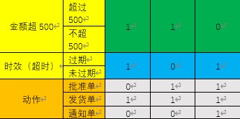 - 将判定表中的列转换成测试用例。