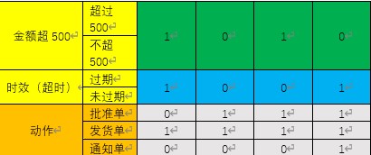 - 动作桩(Action Stub):列出了问题规定可能采取的操作。这些操作的排列顺序没有约束。