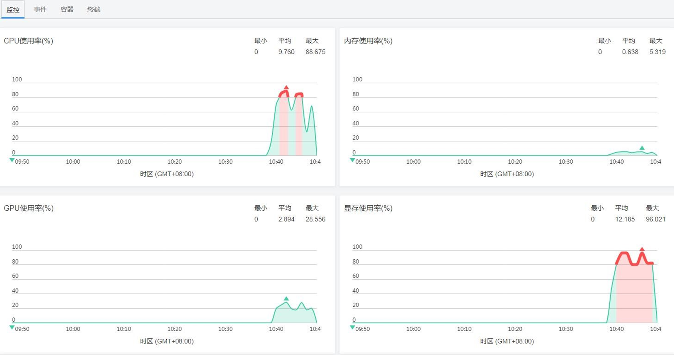 同时,在“Pod列表>监控”Tab页中,可以看到各种资源的使用率。