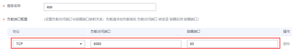 - EXPOSE即暴露某个端口,通常在启动容器时配合docker run -p <宿主端口>:<容器端口>一起使用,云容器实例中容器如果要对外暴露端口,只需在创建负载的时候配置负载访问端口:容器端口的映射,这样就可以通过负载请求域名:负载访问端口访问到容器。