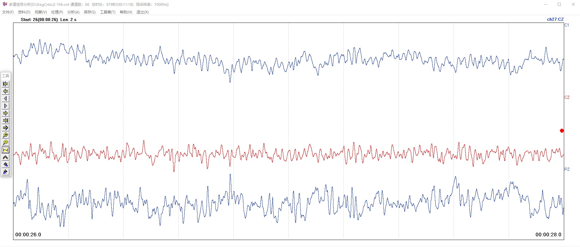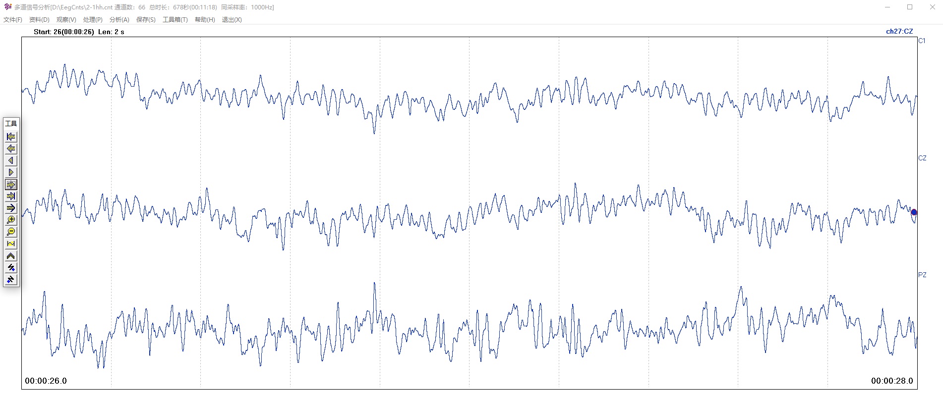 对当前通道(第27通道,CZ)进行时域K-T滤波。