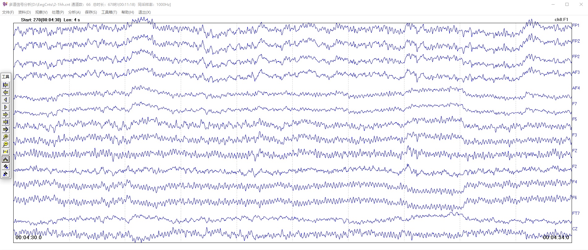 滤波前信号波形,66通道,长度4秒,采样率1000Hz