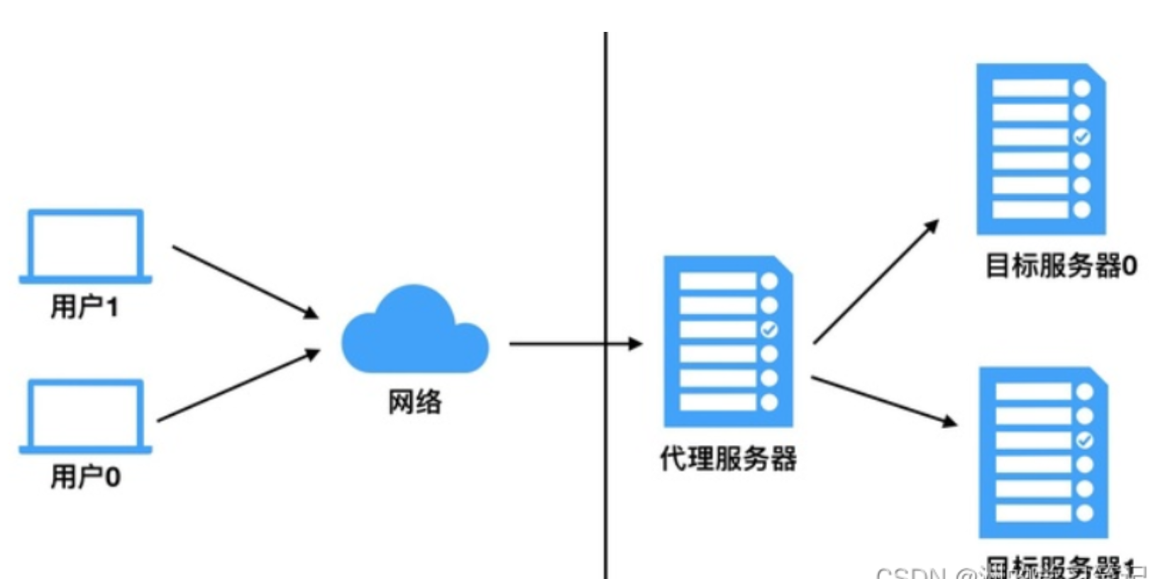 还是拿外卖做比方:类似饿了么『专星送』服务,我们(用户)在想喝咖啡的时候,并不需要知道我们附近哪个广场哪个角落有家星巴克(目标服务器),我们只需要打开专星送(代理服务器),直接下单就是,其会自动分配合适的门店为我们提供咖啡。