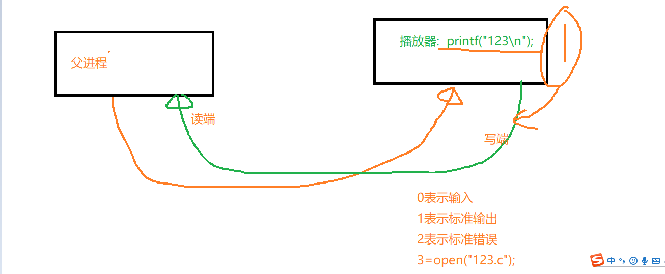 2. 从模式: 将mplayer播放器当做子进程启动,父进程可以通过管道与子进程之间进行通信。