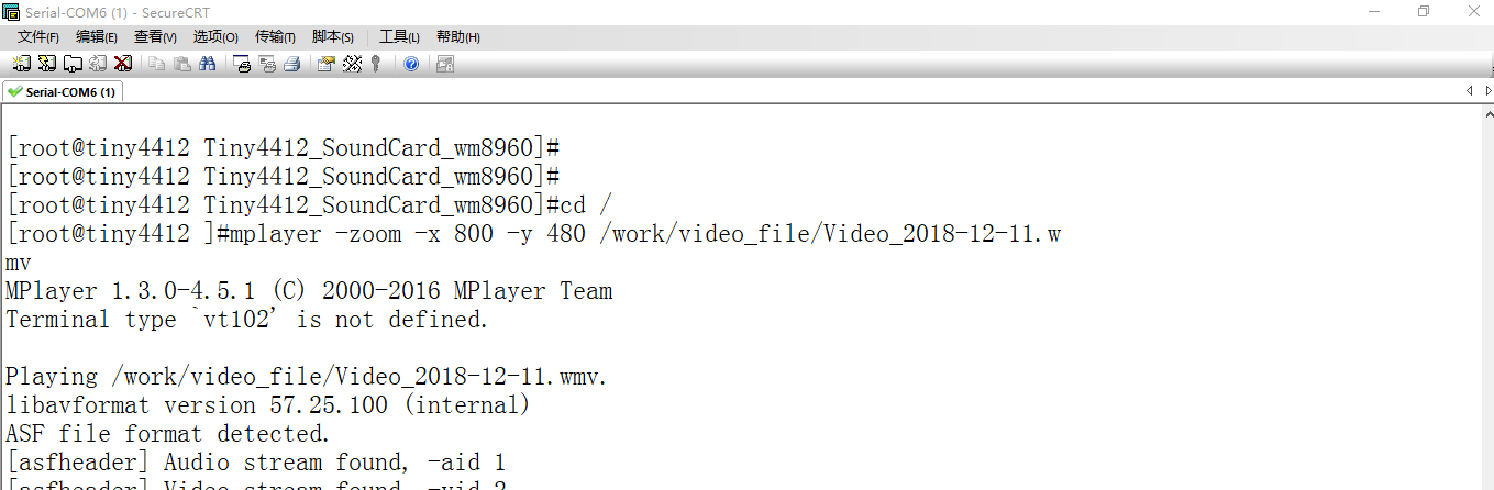 | [root@tiny4412 ]#mplayer -zoom -x 800 -y 480 /work/video_file/Video_2018-12-11.wmv |
