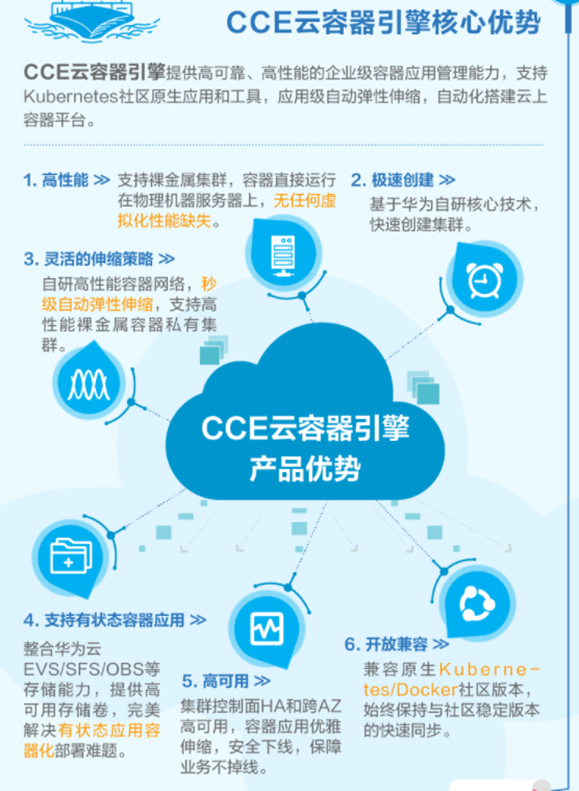 云容器引擎CCE可提供高可靠高性能的企业级容器应用管理服务,支持Kubernetes社区原生应用和工具,简化云上自动化容器运行环境搭建。同时CCE具有简单易用、高性能、开放兼容,及多场景部署特性。相信随着容器技术的不断发展,云容器的应用会越来越广泛。