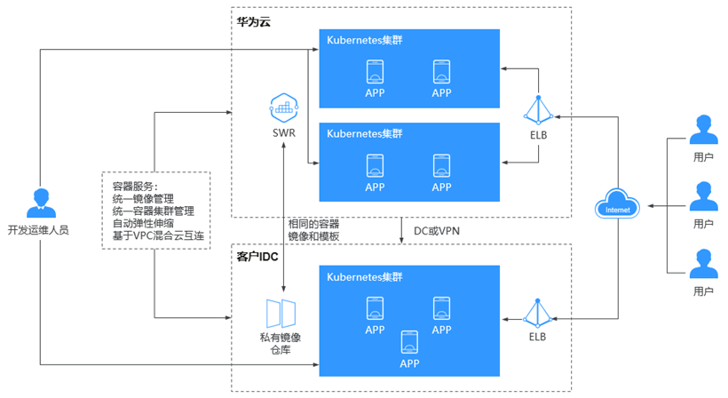 出于IP安全的考虑,用户希望将生产环境部署在公有云上,而将开发环境部署在本地的IDC。
