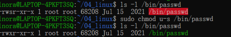 (14)撤销可执行文件/bin/passwd的suid权限。