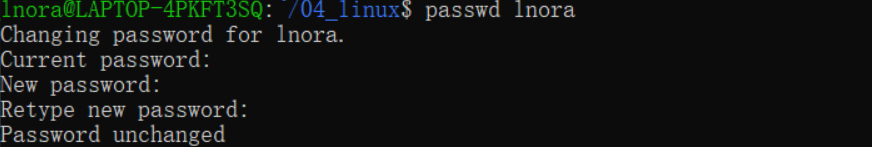 (15)使用passwd命令修改当前正在登陆用户的密码,看能否执行成功。