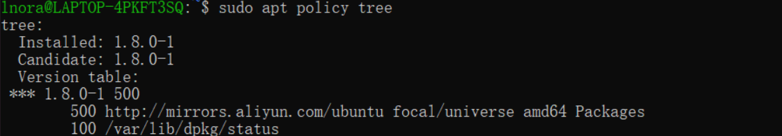 (19)使用apt包管理命令查询命令tree的安装状态和版本信息。(policy)
