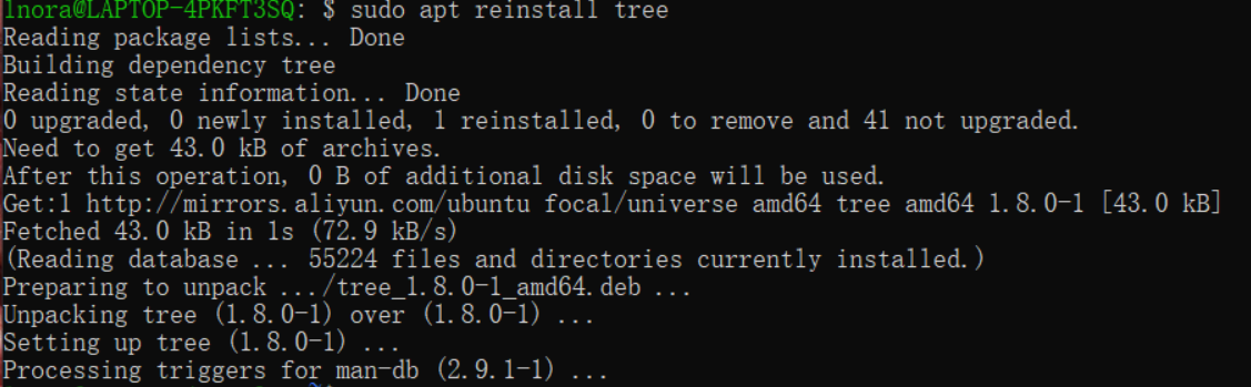 若tree命令不可用,则用sudo apt install tree命令来安装tree包。
