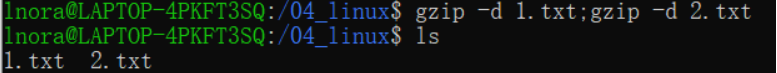 (1) 在登陆用户的主目录下创建目录04_linux,进入到04_linux目录中。在当前目录下,创建文件1.txt,2.txt,使用gzip命令分别压缩文件1.txt和2.txt,这时当前目录下有哪些文件?