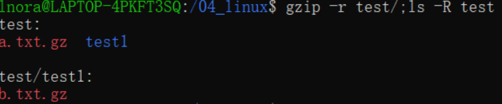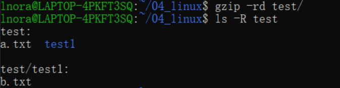(4) 在04_ubuntu目录下,使用gzip命令解压test目录下的文件。