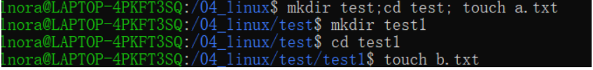 (3) 在04_ubuntu目录下,创建test目录,进入到test目录下,创建文件a.txt,同时创建目录test1,进入到test1目录,创建文件b.txt,向上返回两级目录,即回到04_ubuntu目录下,使用gzip命令压缩test目录下的文件,执行压缩命令后,这时test目录下有哪些文件和目录?