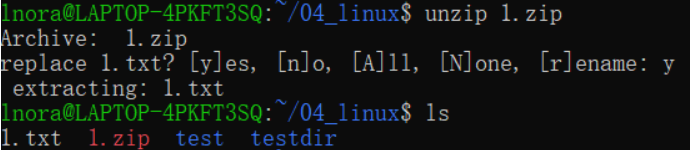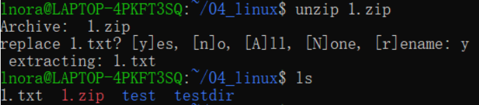 (6) 在04_ubuntu目录下,使用unzip命令解压缩1.zip文件,这时当前目录下有哪些文件?