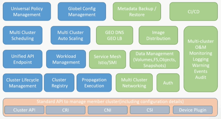 2)无跨集群自动调度能力,包括调度的能力可能都是在集群内部,应用需要自主的选择具体的集群