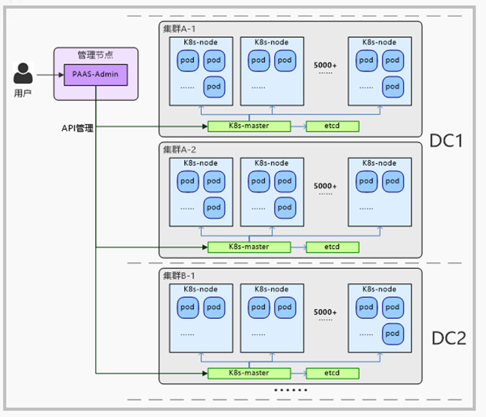 2)受到k8s本身性能的限制,包括scheduler、 etcd 、API server等一些性能瓶颈,每一个集群也有它数量的上限。