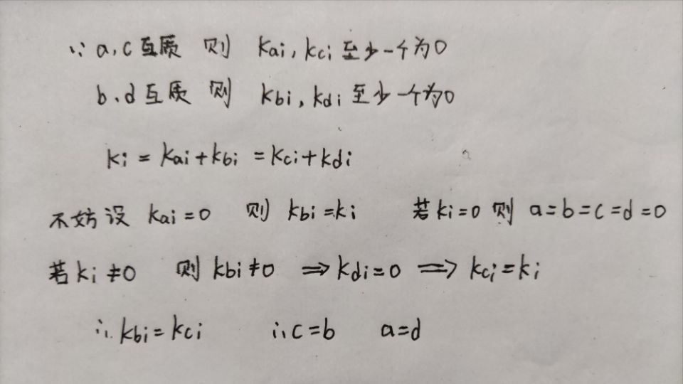 假设 非负整数 a,b,c,d ,有gcd(a,c)= 1,gcd(b,d)= 1 ,a * b = c * d