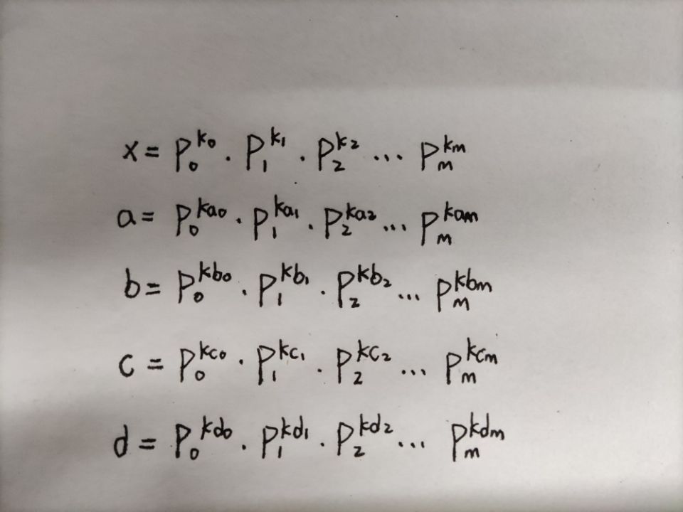 令 x = a * b = c * d 对 x a b c d 分解质因子得: