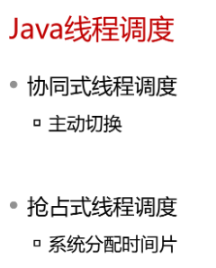 抢占式线程调度:每个线程间由系统来分配执行时间,现成的切换不由线程本身来决定。