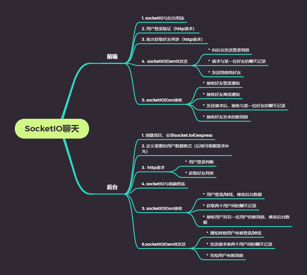 socket.on接收前端传来的请求,并且通过socket.emit来发送数据给请求者 - 登录或者离线,那么就要发送给除自己之外的用户,可以使用