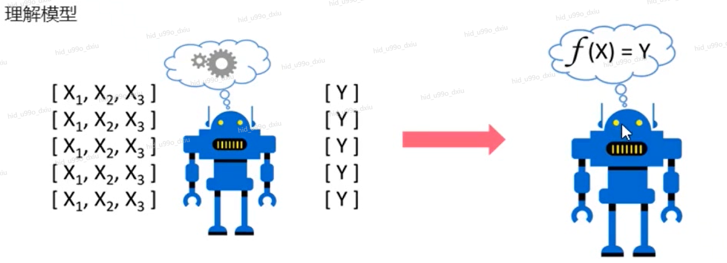 模型可以根据X的数值计算出Y的值,简单的说,如果有一个函数,输入一组X的数值(特征值),机器计算出中Y(预测值)的数值,f(x)=y函数可以理