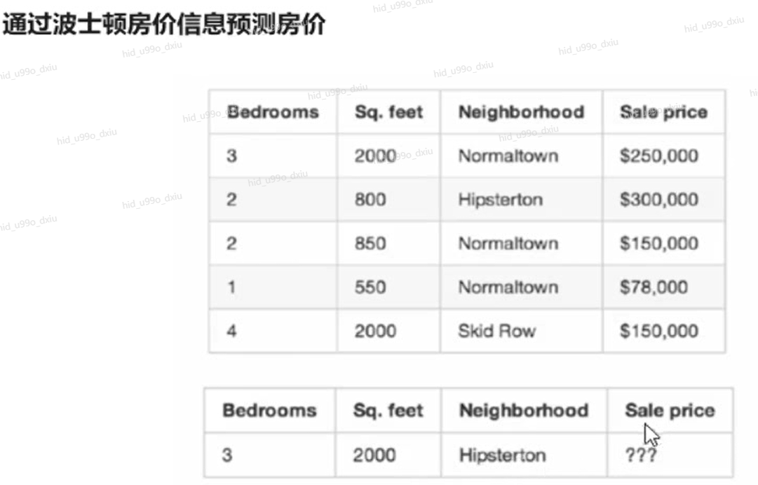 上面这个函数就是模型,可以大概的预测出房价。即使没有经验的人也可以精确预测出房价。