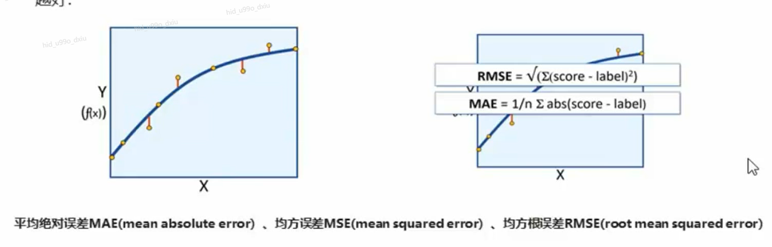 回归模型的评估值为MAE(平均绝对误差)、MSE(均方误差)、RMSE(均方根误差)。上述3个误差值是指评分真实值与预测值之间的误差,在多次建模的过程中,每一次建模结果都会产生一组误差值,评判一个回归模型好坏的方法就是看这三个误差值是否变小或者变大,误差值越小表示回归模型越好.
