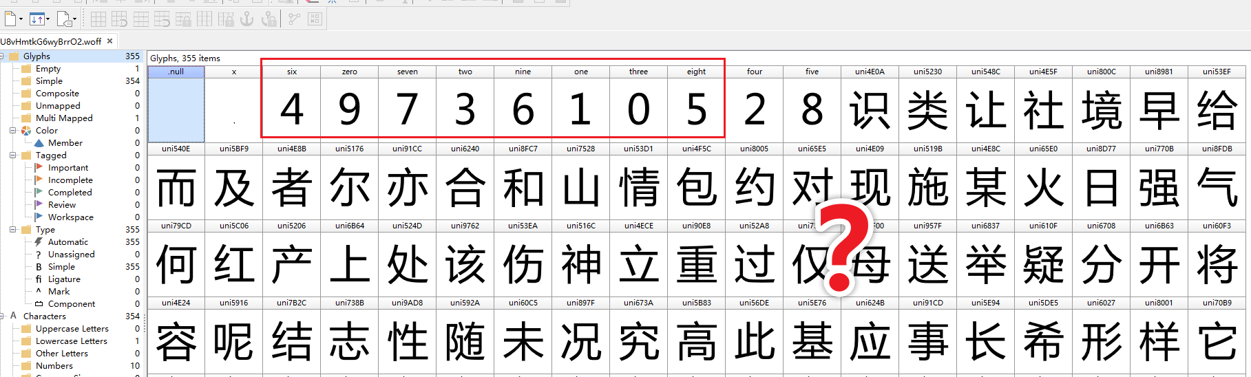 接下来就是实战解码的过程,可以通过 FontCreator 查看一下该字体内容。