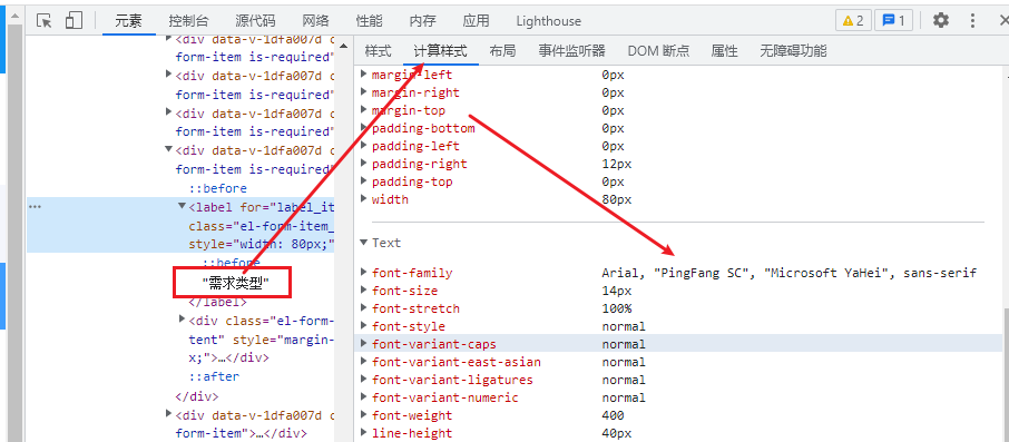 结果在页面中检索了一下,发现并没有发生变化,而且通过计算样式查看,得到的字体是平方和微软雅黑?