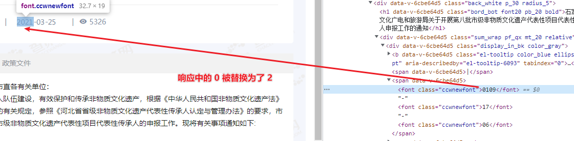 解决第一个问题,确定目标字体文件,该操作很简单,只需要通过文件替换规则比对即可,例如下图中响应中的 0 被替换为 2。