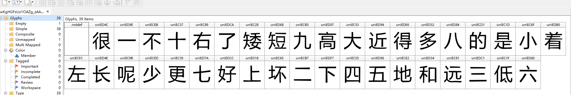 这些编码都可以转换为字体文件中的编码,我们尝试读取一下。