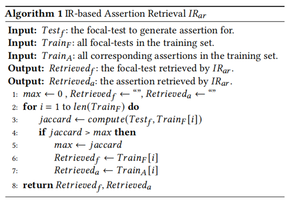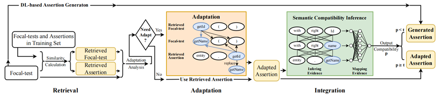 为了解决上述提到的问题,本文提出使用基于信息检索的方法IR(包含基础的信息检索技术IRar以及基于信息检索结果的自动适配技术RAadapt)来提升断言生成的准确性,除了基于信息检索的方法,本文同样提出一个结合方法来将IR和基于深度学习的方法(比如ATLAS)进行结合,进一步提升断言生成的准确度。本文在两个数据集上评估本文提出的方法跟ATLAS的对比,实验结果表明本文提出的方法在两个数据集上的准确率比ATLAS分别高15.12%和20.54%。