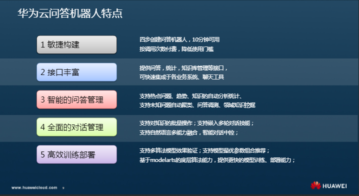 针对业界现状,我们来看一下华为云智能问答机器人的特点。