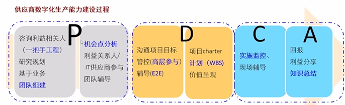 - 辅导供应商借助构建生产数字化各功能模块能力建设: