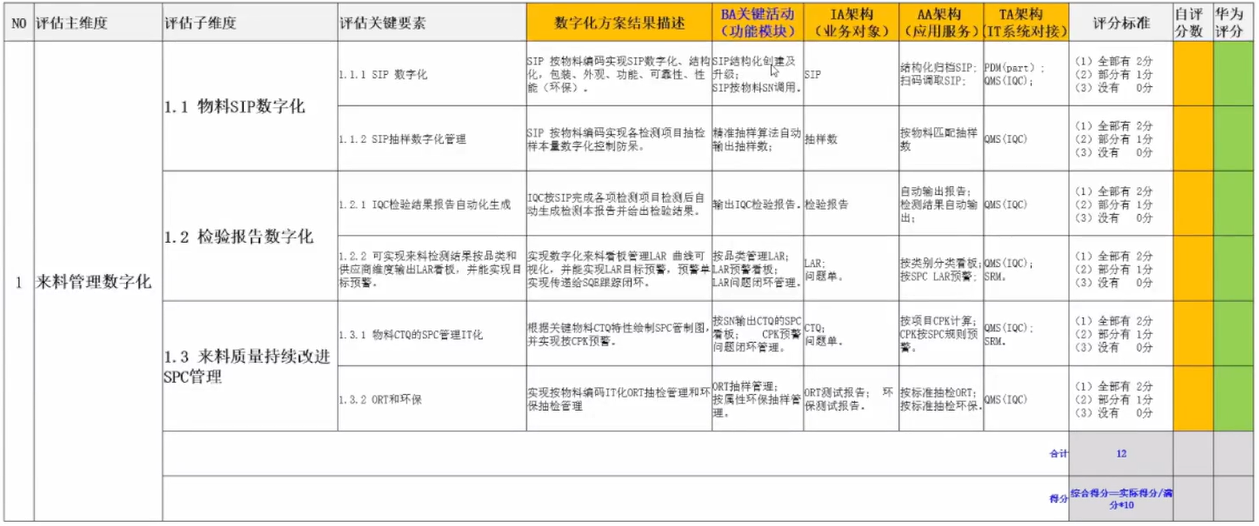 组织TQC及各利益相关方(含数字化使能专家)和供应商起现场逐个要素评估现状对标能力基线,识别能力建设机会点形成建设路标。