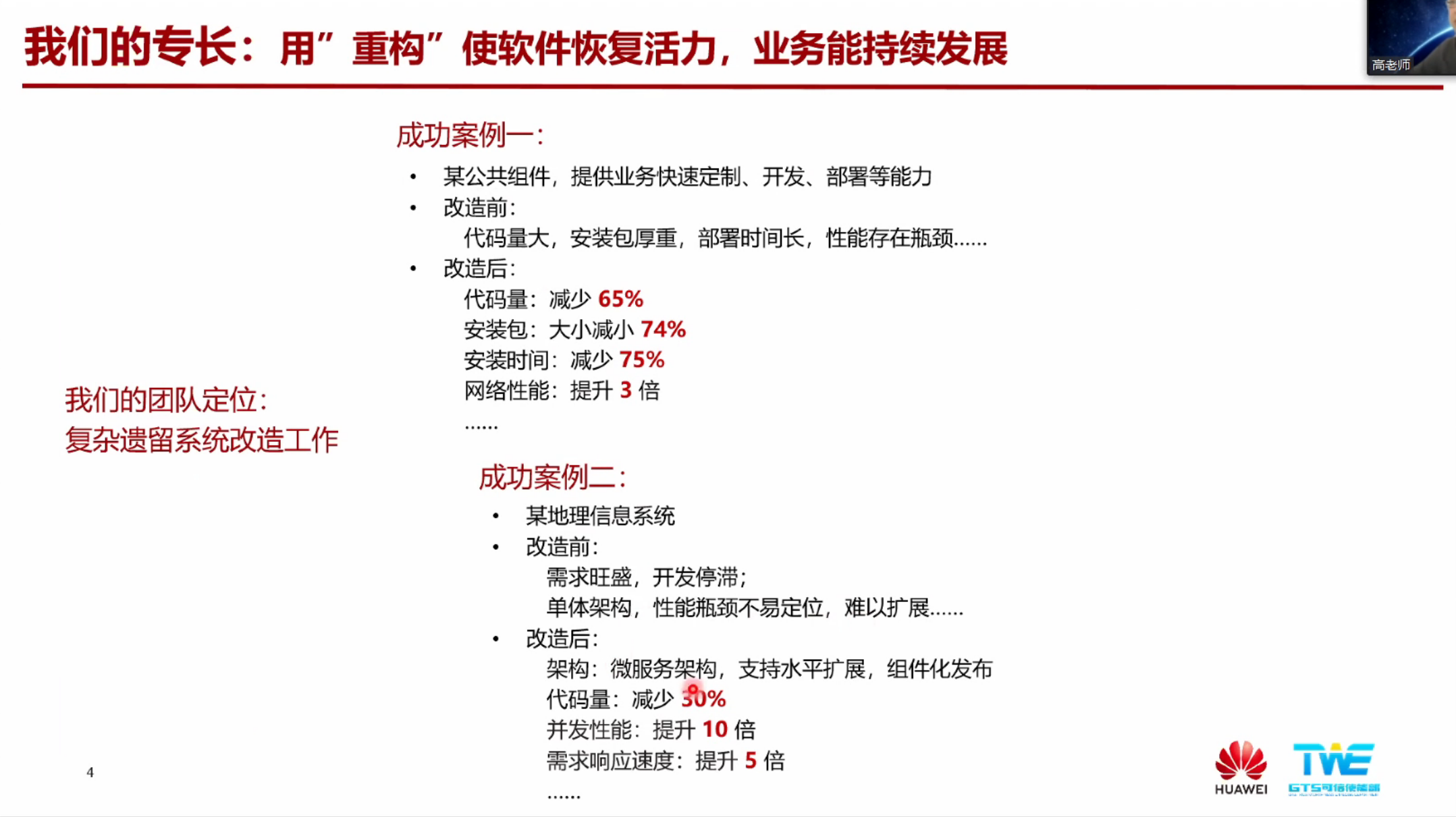 华为代码重构团队以某公共组件以及某地理信息系统为例,讲述了其在华为内部的成功案例。
