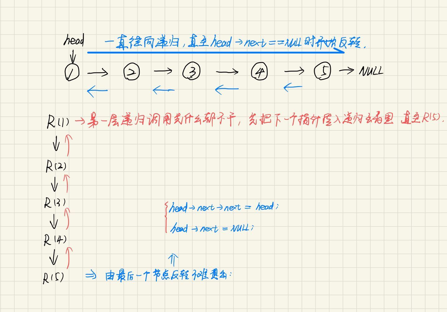//巧了,本题递归的边界是head->next == NULL时,所以在这里就不用重复写了