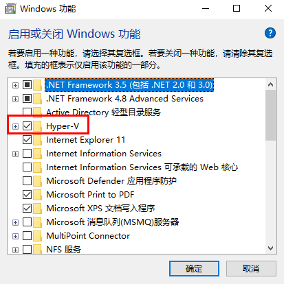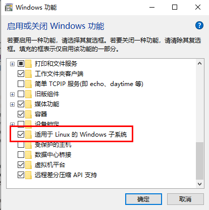 - 打开Windows功能WSL,包括虚拟机、容器、Hyper-V等