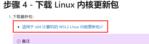 - 到https://aka.ms/wsl2kernel下载linux内核更新包即可