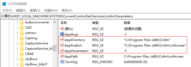 - 使用regedit打开注册表,找到HKEY_LOCAL_MACHINE\SYSTEM\CurrentControlSet\Services\cntlm