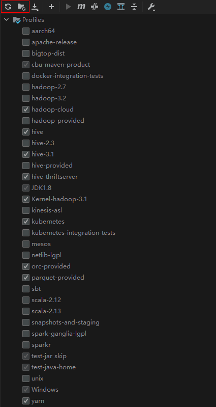 2.3 勾选Maven Profiles中的依赖,点击生成source后刷新