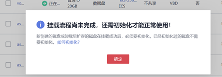 最后返回云硬盘EVS列表页面,此时云硬盘EVS状态为“正在挂载”,表示云硬盘EVS处于正在挂载至弹性云服务器ECS的过程中。当云硬盘EVS状态为“正在使用”时,表示挂载至弹性云服务器ECS成功,下一步进行初始化才能正常使用
