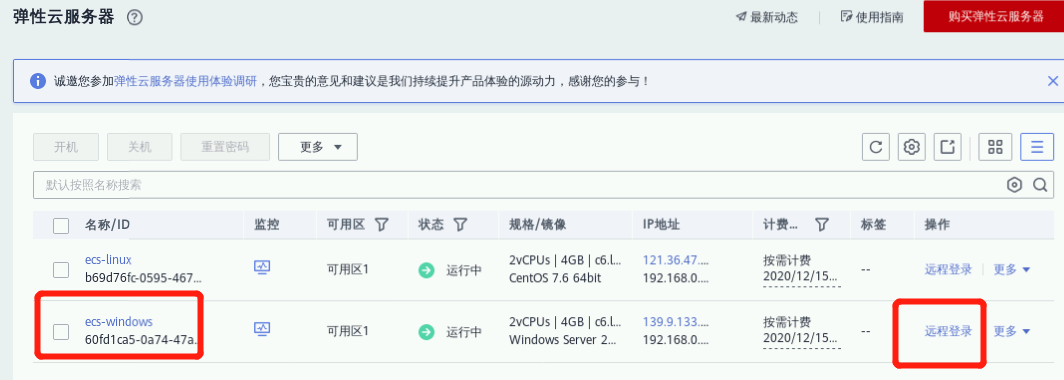 然后选择相应的windows弹性云服务器ECS,最后点击远程登录就行
