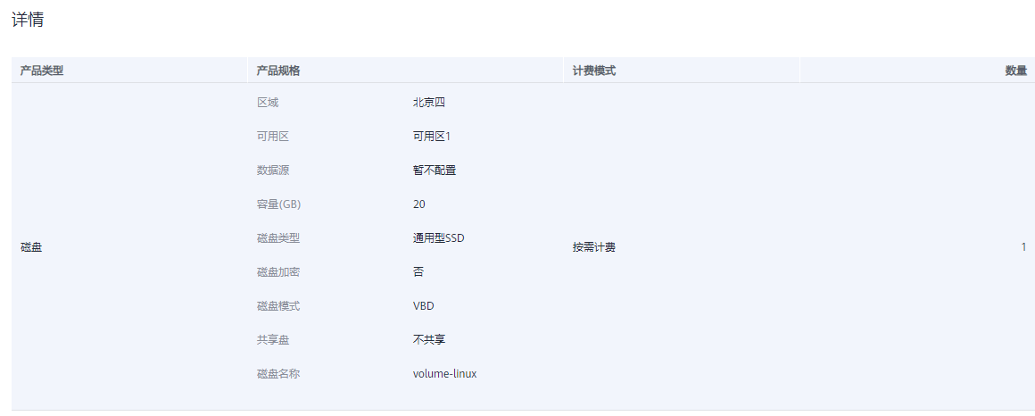 单击“立即购买” 在“详情”页面,您可以再次核对云硬盘EVS信息。确认无误后,单击“提交”,开始创建云硬盘EVS。如果还需要修改,单击“上一步”,修改参数;