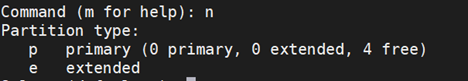 这里以创建一个主要分区为例,输入“p”,按回车键“Enter”,开始创建一个主分区,用分区编号选择“1”为例,然后输入主分区编号“1”,按回车键“Enter”