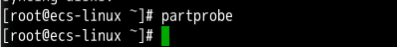 执行以下命令,将新的分区表变更同步至操作系统里面