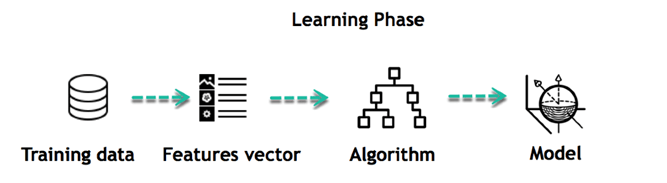 • 训练:这个想法是给出一组输入(特征)和它的预期输出(标签),所以在训练之后,我们将有一个模型(假设),然后将新数据映射到训练过的类别之一。