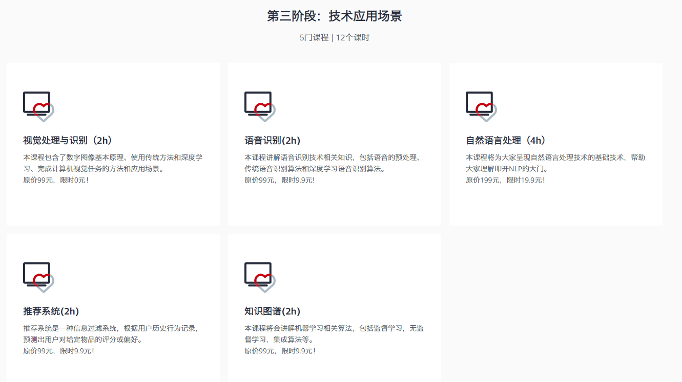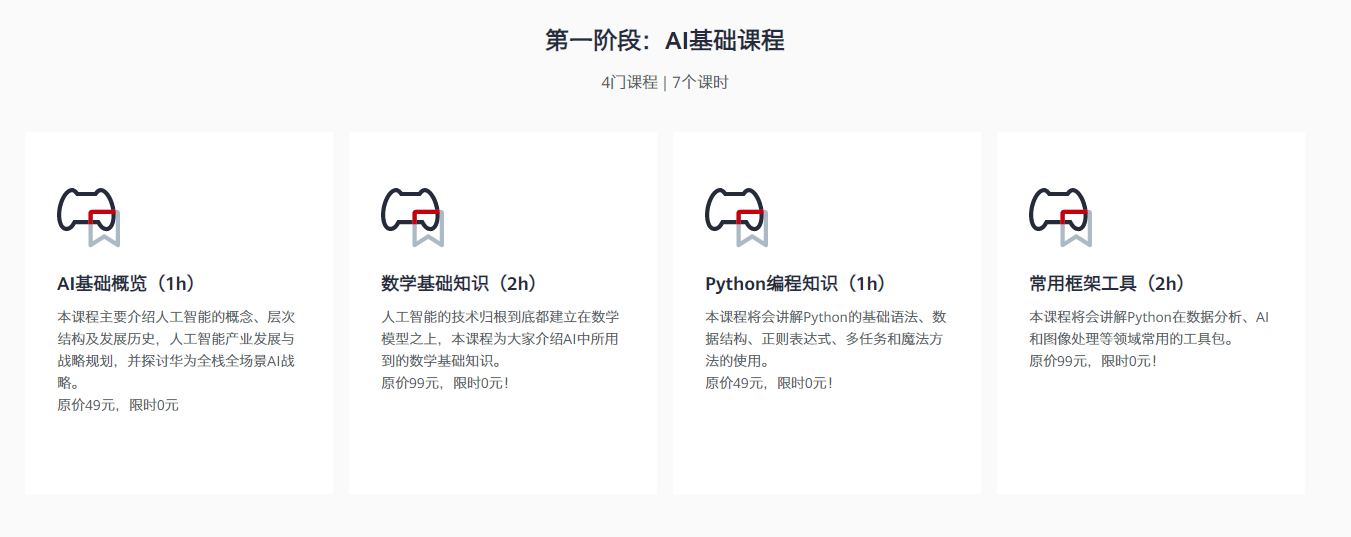 华为云开发者学堂推出了 AI 专业学习路径 ,第一阶段的学习刚好设计我们 AI 上述的基础知识,感兴趣的小伙伴可以立刻报名学习。